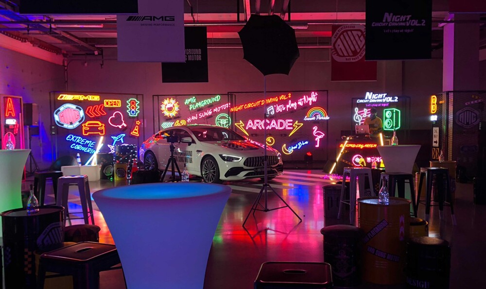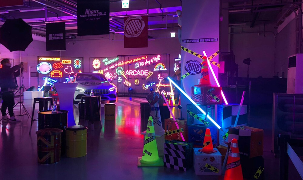Mercedes_Benz에서 진행하는 프라이빗 서킷 드라이빙 파티 'Let's play at night'에 공간연출을 진행하였습니다.